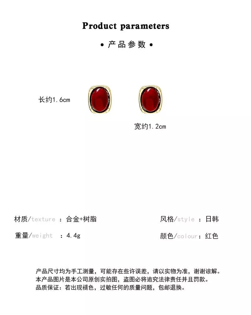 S925復古港風紅色滴釉耳環秋冬輕奢氣質新年耳飾