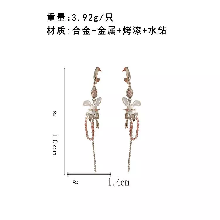 S925銀針甜酷兔子設計耳環個性鑲鑽流蘇長耳環