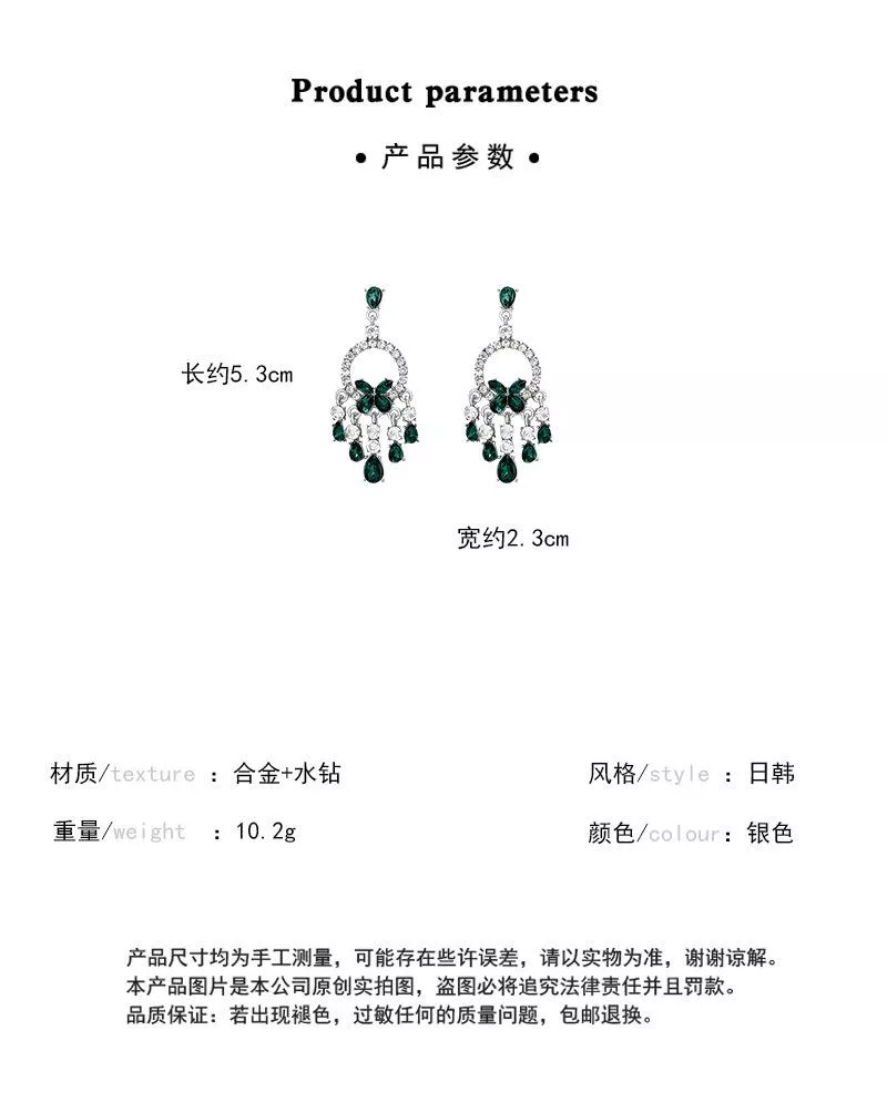 綠色蝴蝶圓水晶氣質鋯石輕奢優雅精緻流蘇耳環