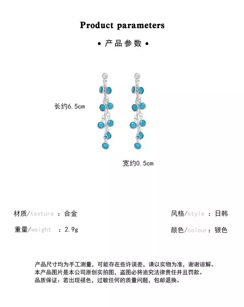 超閃冰川藍水晶流蘇輕奢設計感圓臉顯瘦耳環