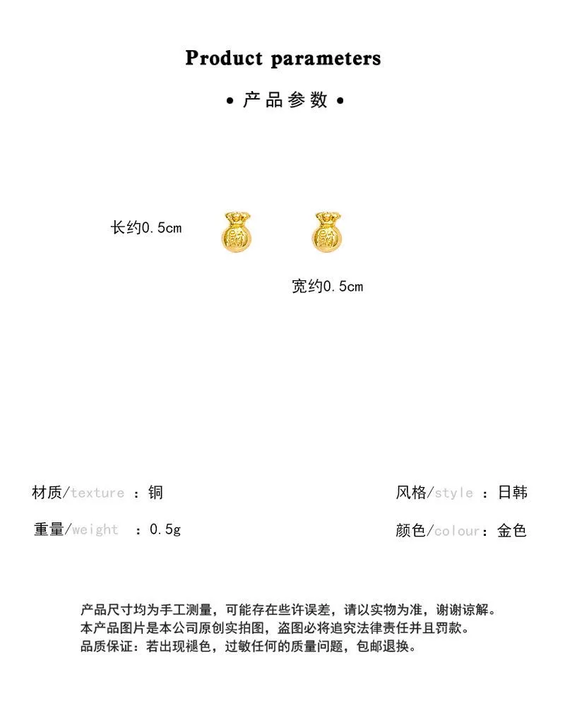 S925銀針金色來財福袋小耳環財源滾滾百搭福氣耳飾